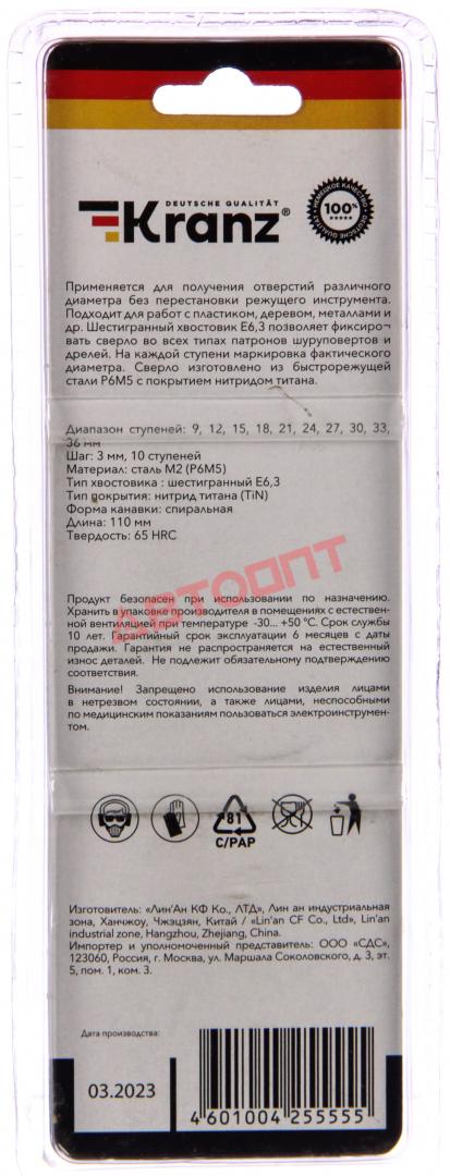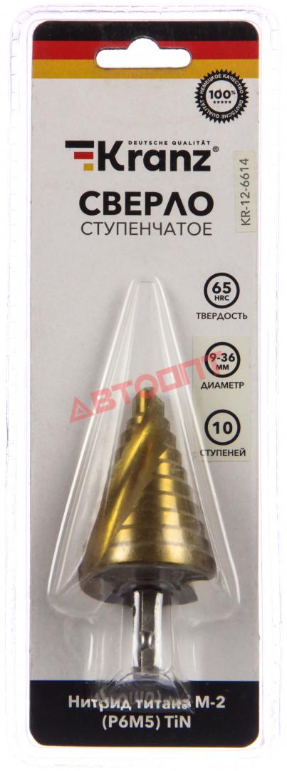 Сверл по металлу СТУПЕНЧАТОЕ, титановое (9-36мм) P6M5 TITAN (KR-12-6614) "KRANZ" (Китай)