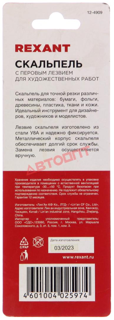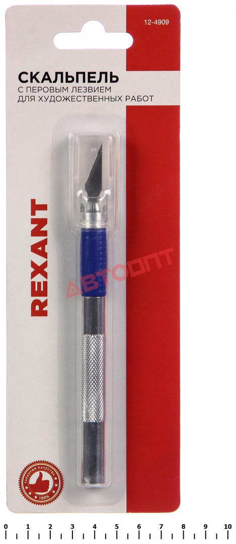 Нож - СКАЛЬПЕЛЬ с перовым сменным лезвием 9 мм шириной (12-4909) "REXANT" (Китай)